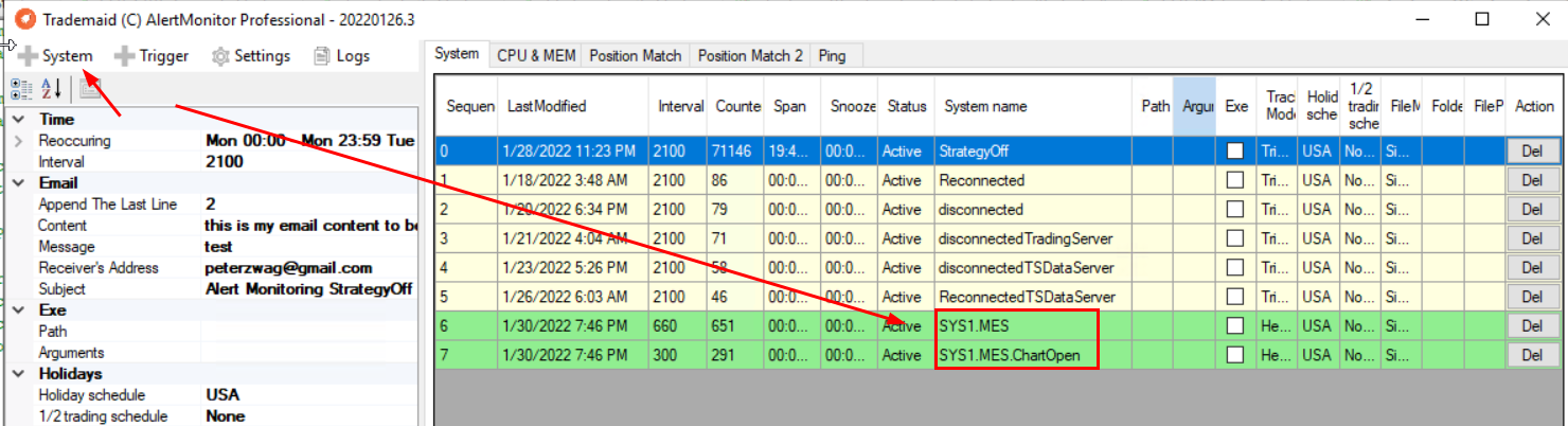 You can edit all fields below. Add / remove a system, change position contracts / symbols. When done click on the updated field and enter in the date / time.