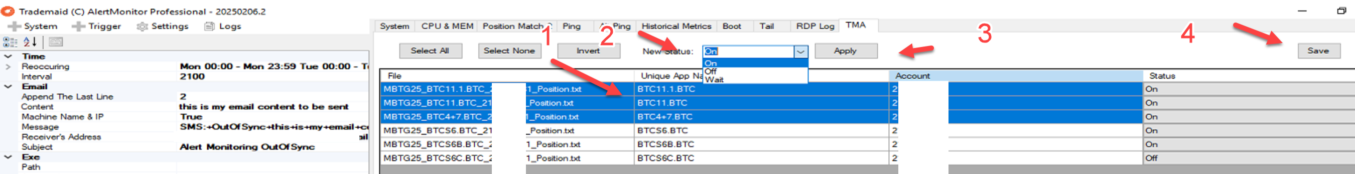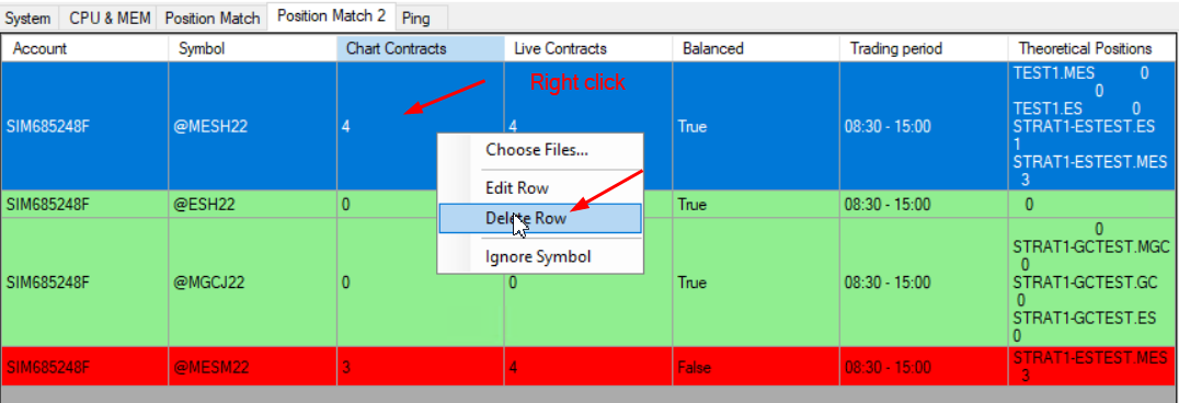 i) Tm automation showing out of sync. If account position not correct then correct this situation by doing a market buy / sell / flat with the correct amount of contracts.