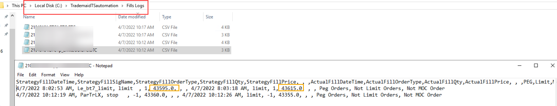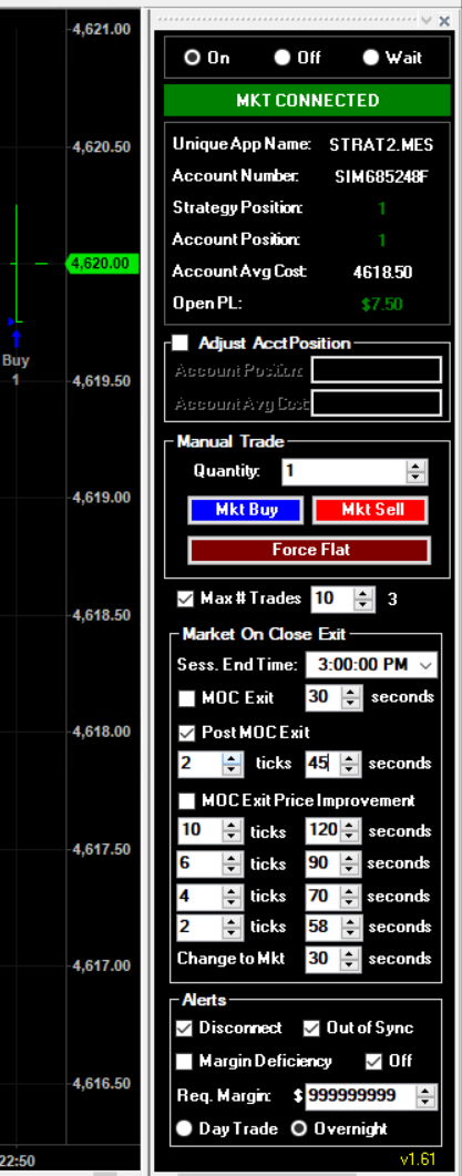 Fixed. A chart opened with a stale trade that went flat (not real time) trade on the last bar may be out of sync until the open of the next bar. An alert will show in this case that you are out of sync. This is not an issue for a real time trading or when Trademaid Automation MOC exit / moc exit Price Improvement is used. There is an additional strategy to be added to a chart if you think this unlikely situation will occur. See TrademaidTSAutomationHelper for details.