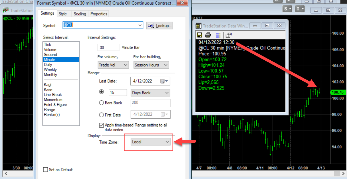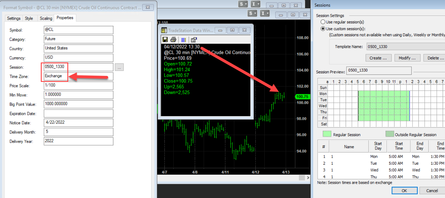 Here is an example of how to check your chart. This chart below is on exchange time and the last bar of the day shows 1:30 pm