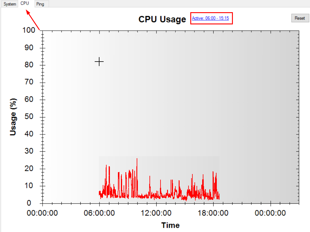 Note the time filter. GSB is used on this machine after hours, and so the CPU is only shown during my trading period.