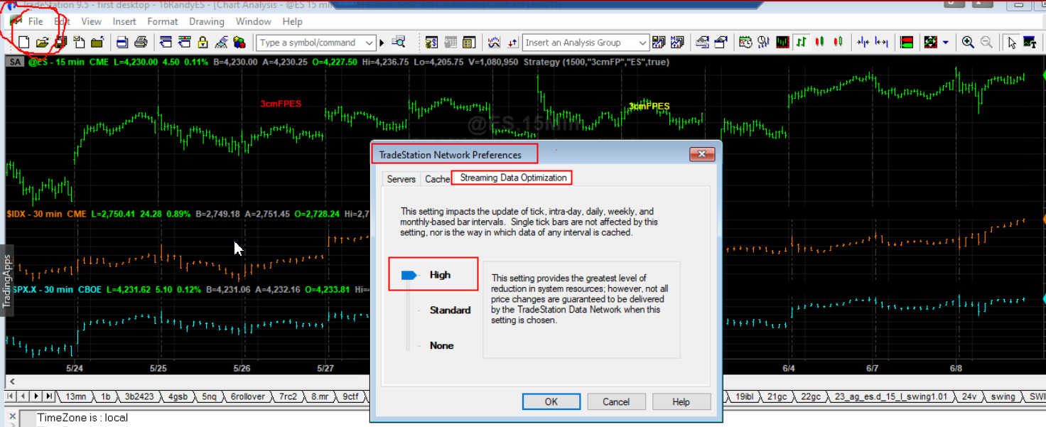 1) we had about 75 charts open, if possible reduce to the ones are really necessary. Non essential charts can be run of Multicharts using TS data. TS data on MC charts is slower to trade.