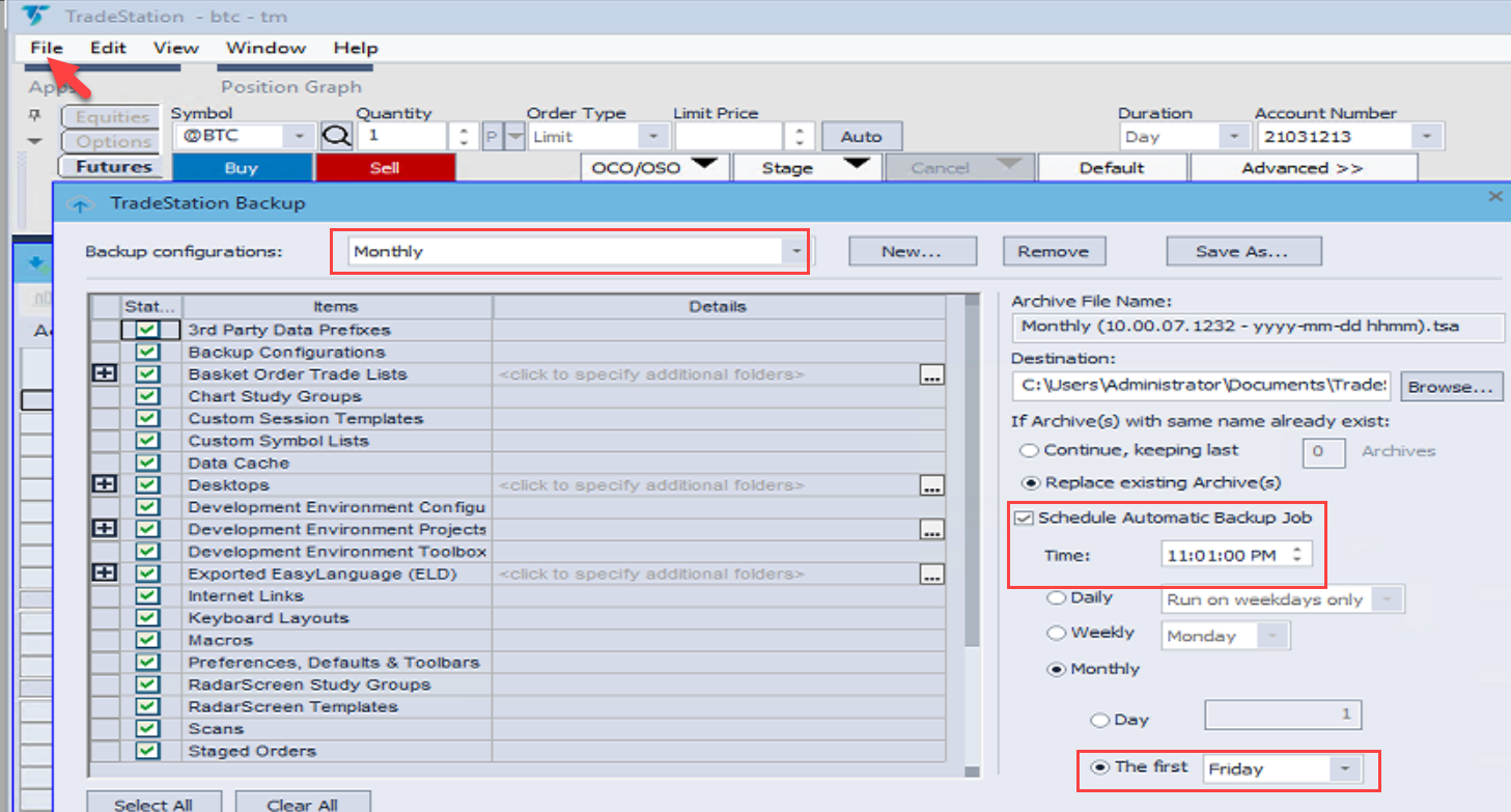 8) New Jan 2025. Do not allow any scheduled backups of TS during trading periods. Recommend to do this Friday evening after the market has closed.