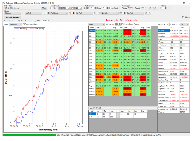 If we used $12.50 per side slippage & commission, this will shift the fitness to be looking for higher average trade profits, and less trades. This is much more desirable.