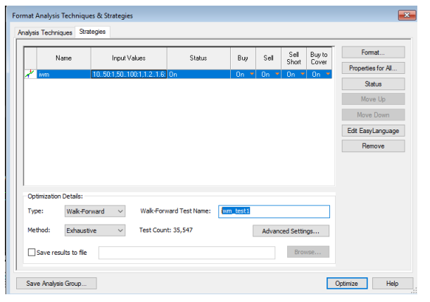 Here is how to optimize a strategy in Tradestation as a preparation for EWFO: