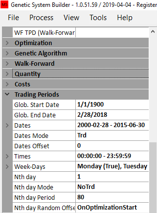 You can choose which days to trade for your test. Some may like to build a system only for Friday trading to test some option strategy, it’s very easy to do here, just select Friday from the Week days extended menu.