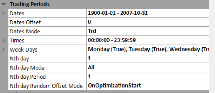 You can choose which days to trade for your test. Some may like to build a system only for Friday trading to test some option strategy, it’s very easy to do here, just select Friday from the Week days extended menu.