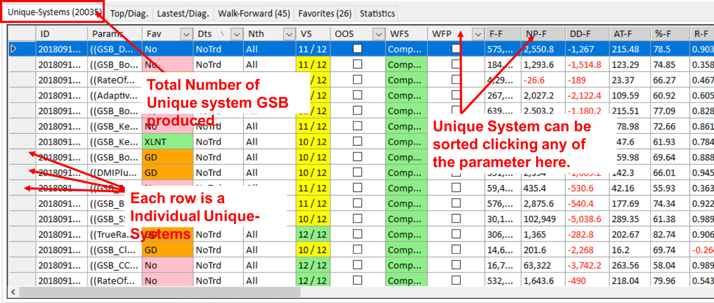 In the top left corner it shows the total number of the Unique system GSB produces. It will start showing the Total number of systems as GSB starts to produce the systems, and in the lower part each ROW shows 1 Unique system and Each column shows a statistics of the Systems.