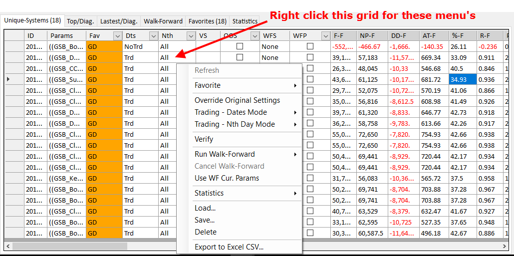 Note: you can sort (Ascending/Descending) the systems based on any Parameter on the top and choose the one you find best for your trading.