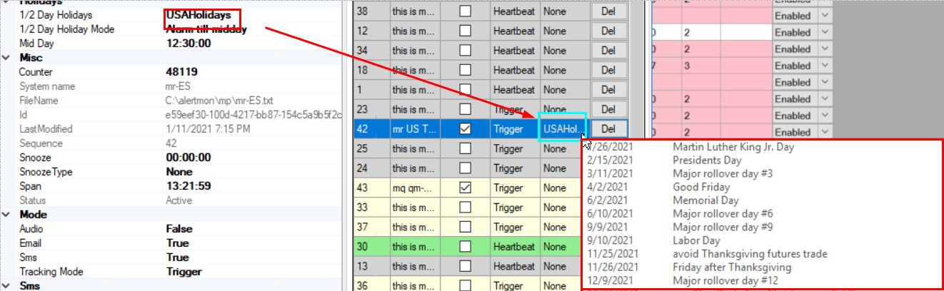 Globex does not trade on these days. So alarms should be turned off. A mouse over will show the holidays. Other markets will be added over time.