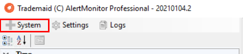 This is the name of the system you monitor. This must first be setup in the Tradestation Chart, then add by pressing the + system button