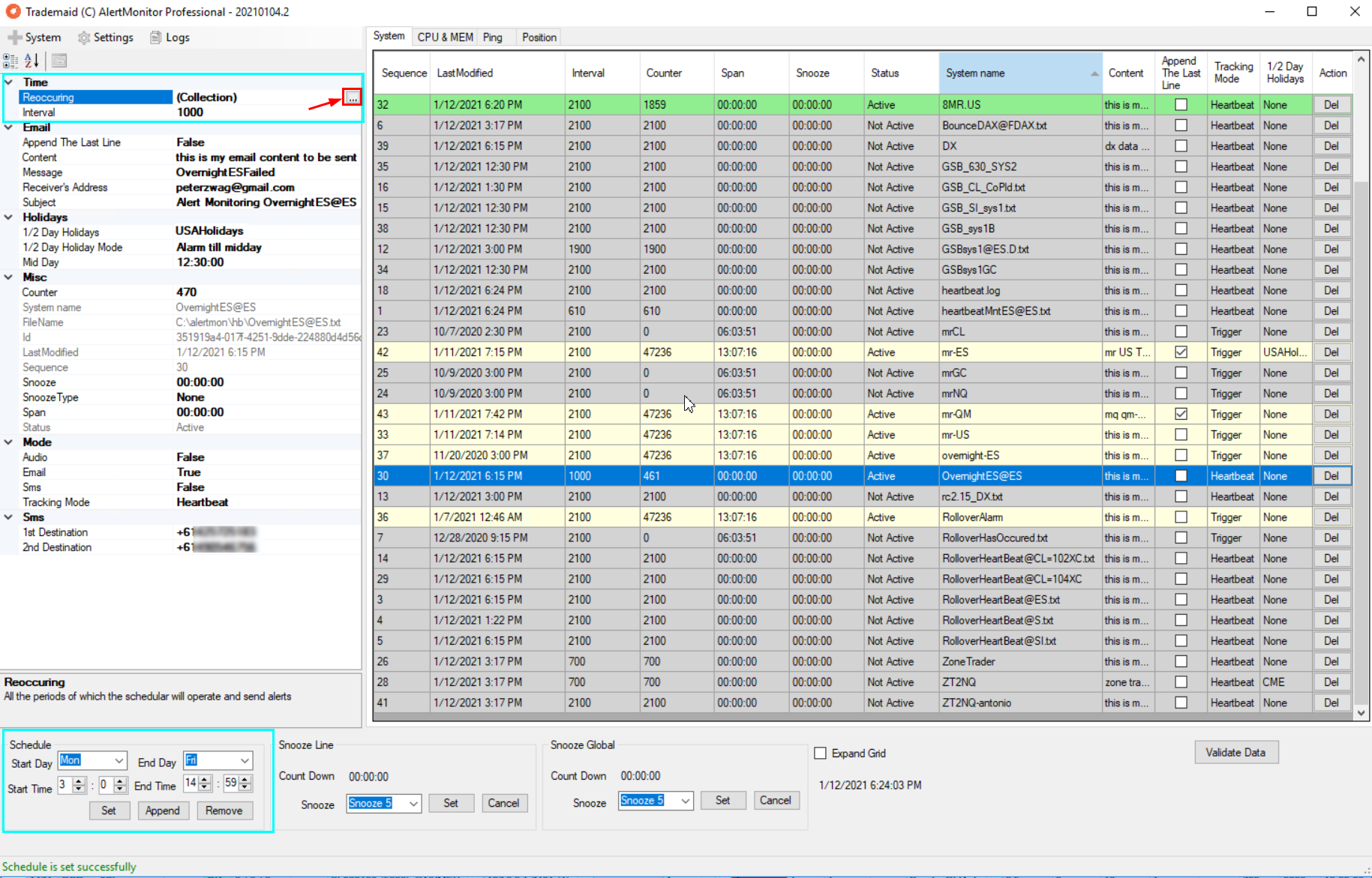 On all rows in Alertmon, there is a count down counter. This is displayed here.