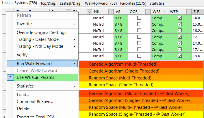 Random space will use the entire range of parameters that GSB allows for a indicator. Best to start with Genetic, but fine to double check with a random space. Random space may need more iterations than genetic to get a valid WF result. See # of random space tests at page 4.